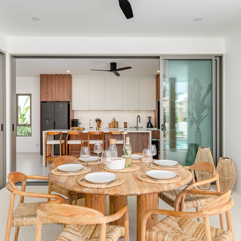 Parfaite pour une famille ou deux couples, la villa allie design balinais, confort occidental et tranquillité absolue.